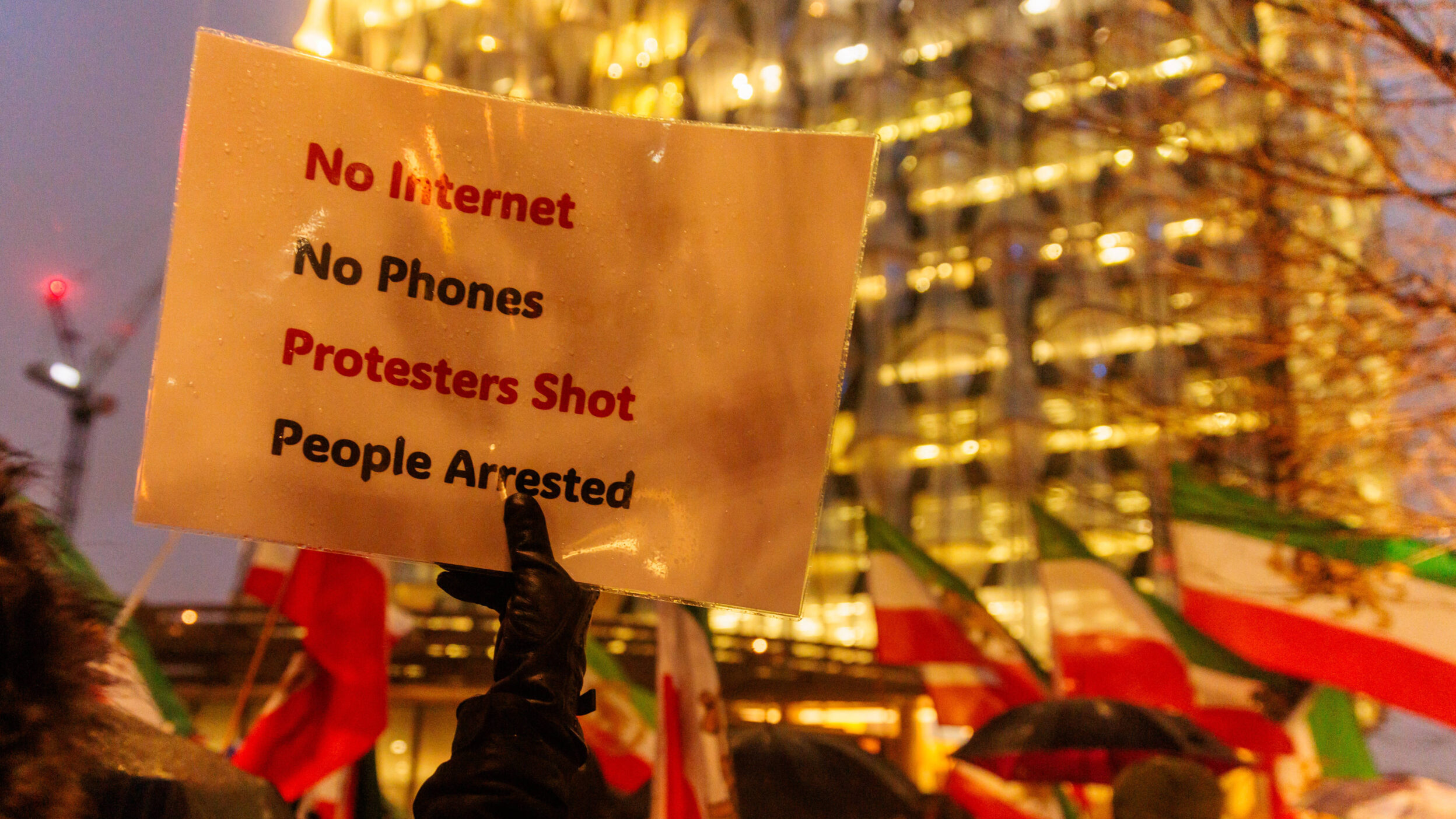 Ein Protestierender hält auf einer Demo in London am 15. Januar ein Schild gegen die Internetabschaltung hoch. – Alle Rechte vorbehalten IMAGO / Avalon.redInternetabschaltungen sind mittlerweile eine verbreitete Methode, vor allem in autoritären Regimes, die Bevölkerung und Informationen zu unterdrücken. Welche Formen dieser Informationskontrolle gibt es? Wie funktionieren sie? Und was hilft dagegen? Eine Analyse.